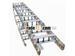 TL series drag chains are mainly consisting ofchain plate (top quality stainless steel with chromium plated),suporing board(extruded aluminium alloy)and pinshaft (alloy),etc.There is no relative motions between the cables/rubber hosesand the drag chains, giving no deforming or twists.The chromiumplated chain board has very nice-looking appearance and has veryrational construction and flexible and high strength.It is reliableand easy to operate, install, dismantal or assemble.It isworthwhile mentioning that the anti-wearing peralrmance has beenimproved greatly due to wear resistant material and alloy pinshaftare used.The product is flexible to bending and has lowresistance, giving low noises.It can be used for a very long periodof time without any deformation or hanging down.